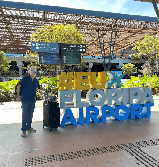 Encontro com o Guia da Risco Zero Turismo no Aeroporto Hercílio Luz em Florianópolis;